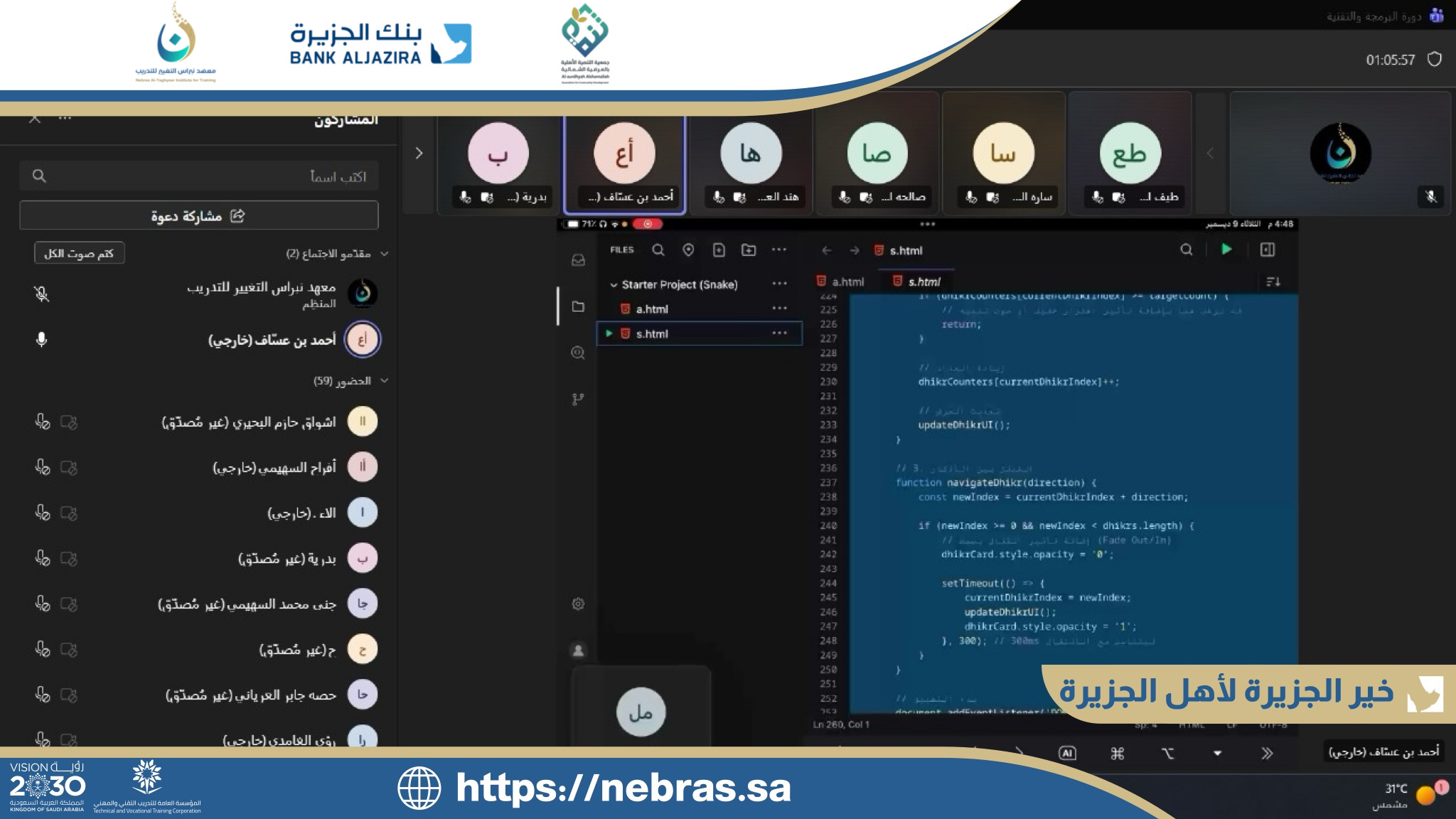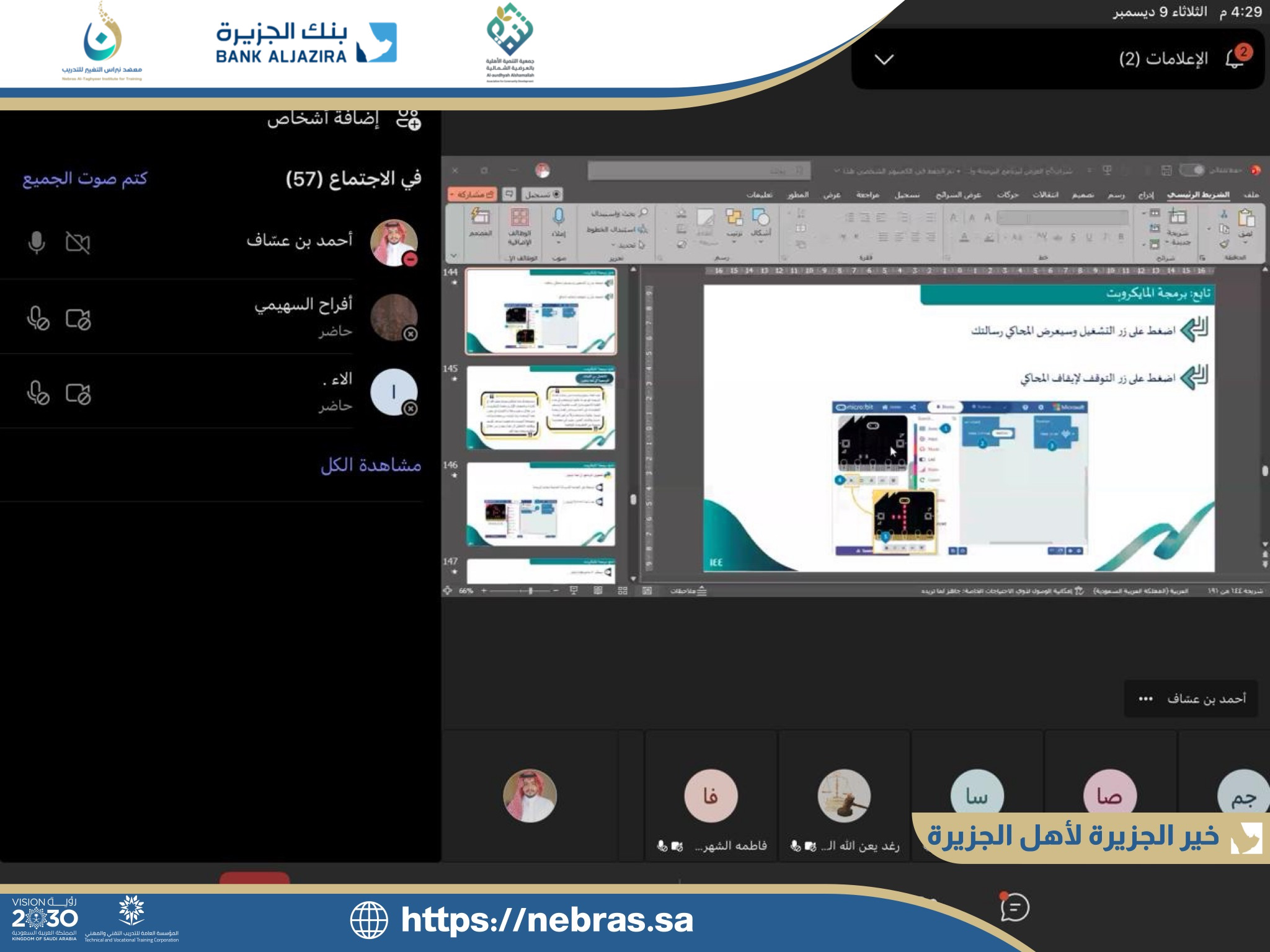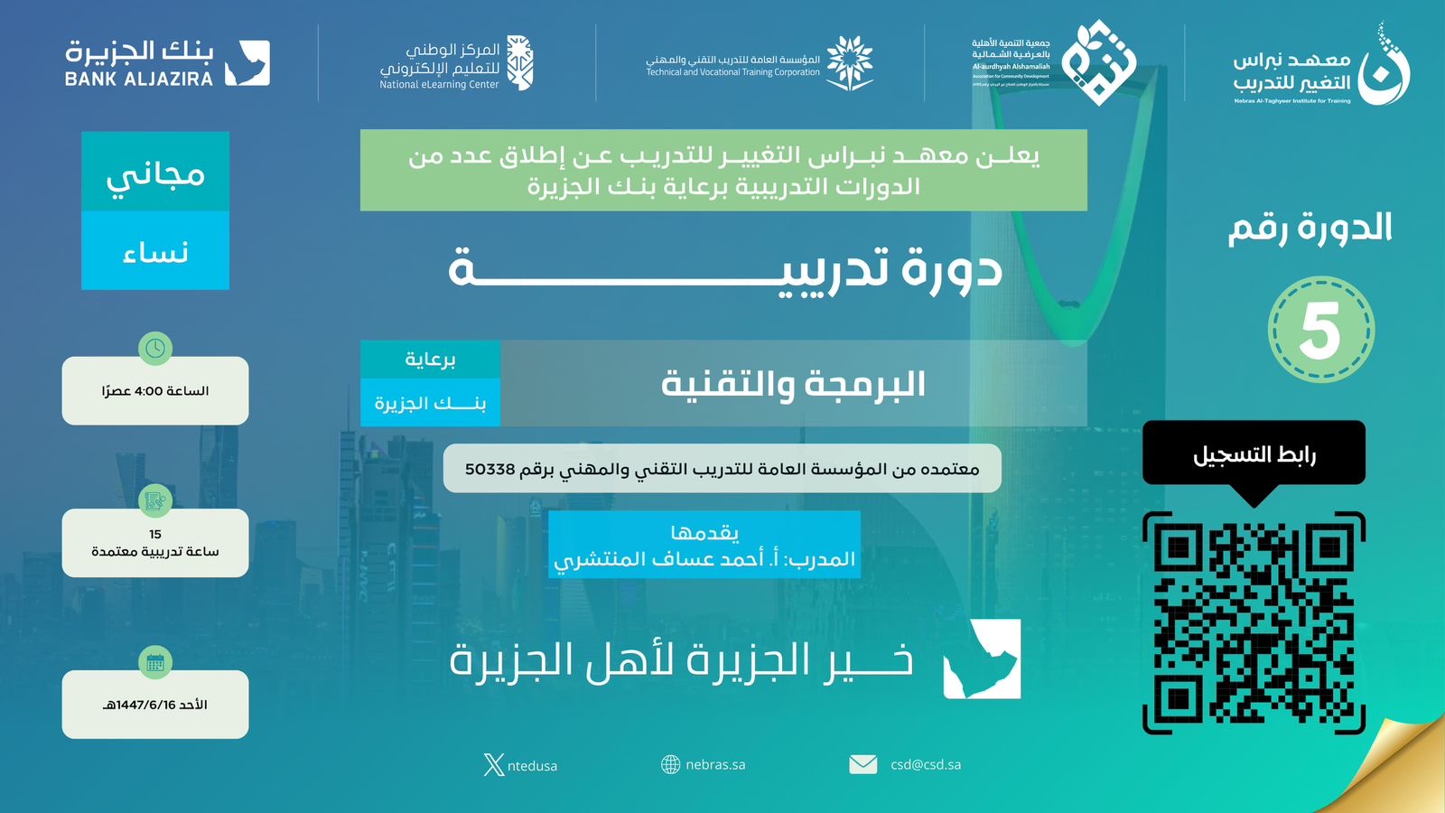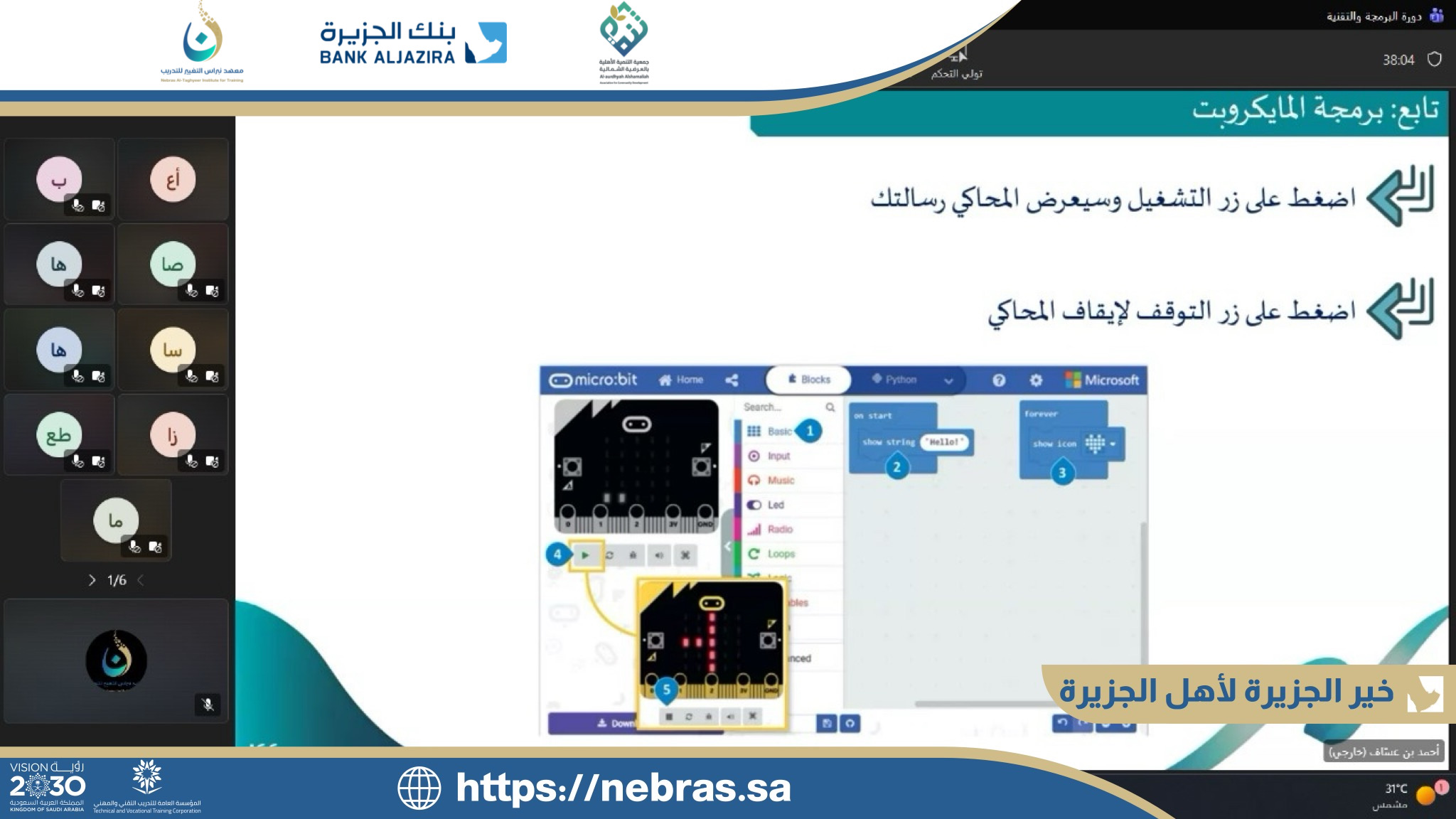 نتقدم بخالص الشكر والتقدير للمدرب على عطائه المتميز، ولجميع المتدربات على التزامهن وتفاعلهن المثري، سائلين الله لهن دوام التوفيق والنجاح في مسيرتهن التقنية 🌟