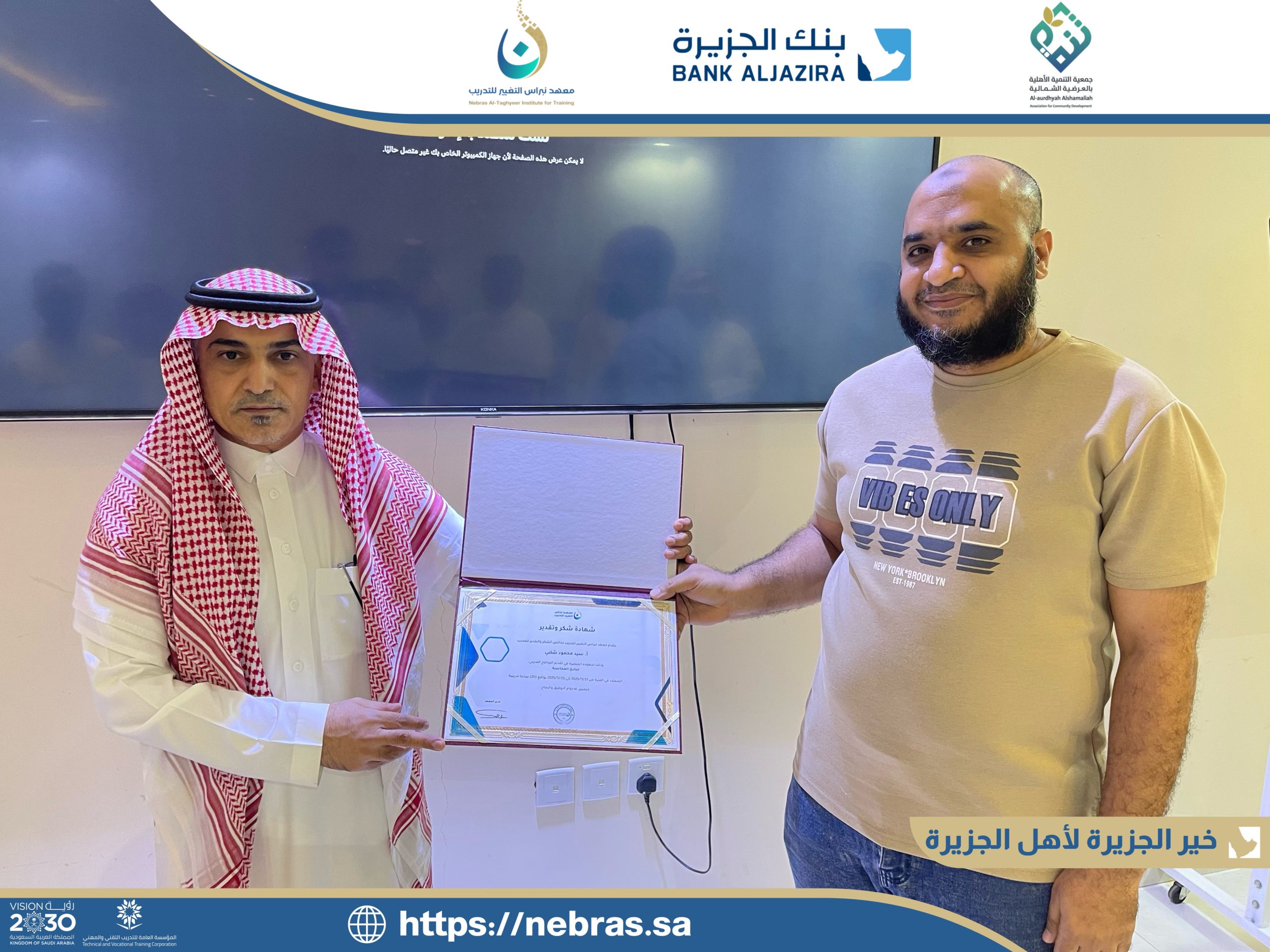 التي قدمها #معهد_نبراس_التغيير_للتدريب @ntedusa، برعاية كريمة من #بنك_الجزيرة @BankAlJazira، وبحضور المتدربين في مقر #جمعية_التنمية_الأهلية_بالعرضية_الشمالية.